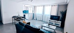 Goście mają dostęp do pełni wyposażonego aneksu kuchennego ze sporą ilością sprzętów: piekarnikiem, płytą grzewczą, lodówką, zmywarką do naczyń, mikrofalówką oraz tosterem. Do dyspozycji są również ekspres do kawy oraz zestaw do parzenia herbaty i kawy wraz z czajnikiem elektrycznym oraz stół jadalniany. Dodatkowe udogodnienia obejmują pościel, ogrzewanie, szafę lub garderobę oraz sprzęt do prasowania (żelazko i deska), suszarkę na ubrania i pralkę.