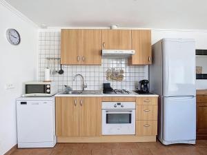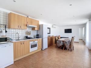 This holiday home features one bedroom with two beds, complemented by a living room furnished with seating areas including a sofa. Guests can enjoy complete kitchen facilities equipped with a stovetop, refrigerator, dishwasher, oven, microwave, coffee machine, and dining table. The bathroom includes both shower and bathtub or shower options along with toilet facilities. Additional in-room amenities include individually controlled air conditioning for the room, heating system, dressing room wardrobe/closet space clothes drying rack ironing facilities including iron and ironing board towels bed linen bedside sockets washing machine flat-screen TV free WiFi throughout the unit.
