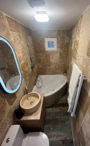 Die Unterkunft umfasst ein Schlafzimmer mit Heizung für zusätzlichen Komfort sowie einen Flachbildfernseher zur Unterhaltung. Die voll ausgestattete Kochnische ermöglicht den Gästen eine bequeme Zubereitung von Mahlzeiten, das angrenzende Badezimmer ist mit Shampoo ausgestattet.