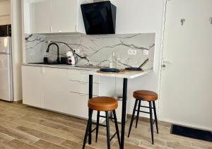 Tra i servizi aggiuntivi sono disponibili una TV a schermo piatto con canali via cavo nell’area soggiorno e prese accanto al letto per dispositivi elettronici. Gli ospiti possono usufruire del parcheggio gratuito in loco che include anche opzioni di parcheggio su strada oltre al servizio privato di check-in/check-out. Il pavimento dell’appartamento è in piastrelle/marmo ed è fornito con asciugamani e biancheria da letto.