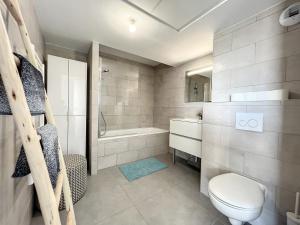 Este apartamento con aire acondicionado incluye un dormitorio con dos camas, una sala de estar con sofá cama y una cocina americana equipada con placa vitrocerámica, frigorífico, lavavajillas, horno, microondas además del área para comer. El baño dispone ya sea bañera o ducha junto con jabón corporal y secador de pelo. Extras adicionales en la habitación incluyen toallas y ropa de cama, plancha con tabla para planchar, caja fuerte, tendedero para ropa, armario/ropero zona para sentarse que incluye muebles tipo sofá sobre suelo cerámico más calefacción.