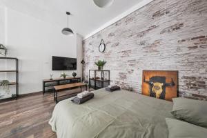 The apartment includes one bedroom with one bed and a private bathroom for added comfort. Guests have access to a fully equipped kitchen perfect for cooking and storing food, alongside practical amenities such as a washing machine and a flat-screen TV.